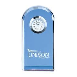 100 x 50mm. Optical crystal bevelled arch clock. Supplied in a black foam lined presentation box. Satin lined presentation box available at extra cost. Engraved in one position.