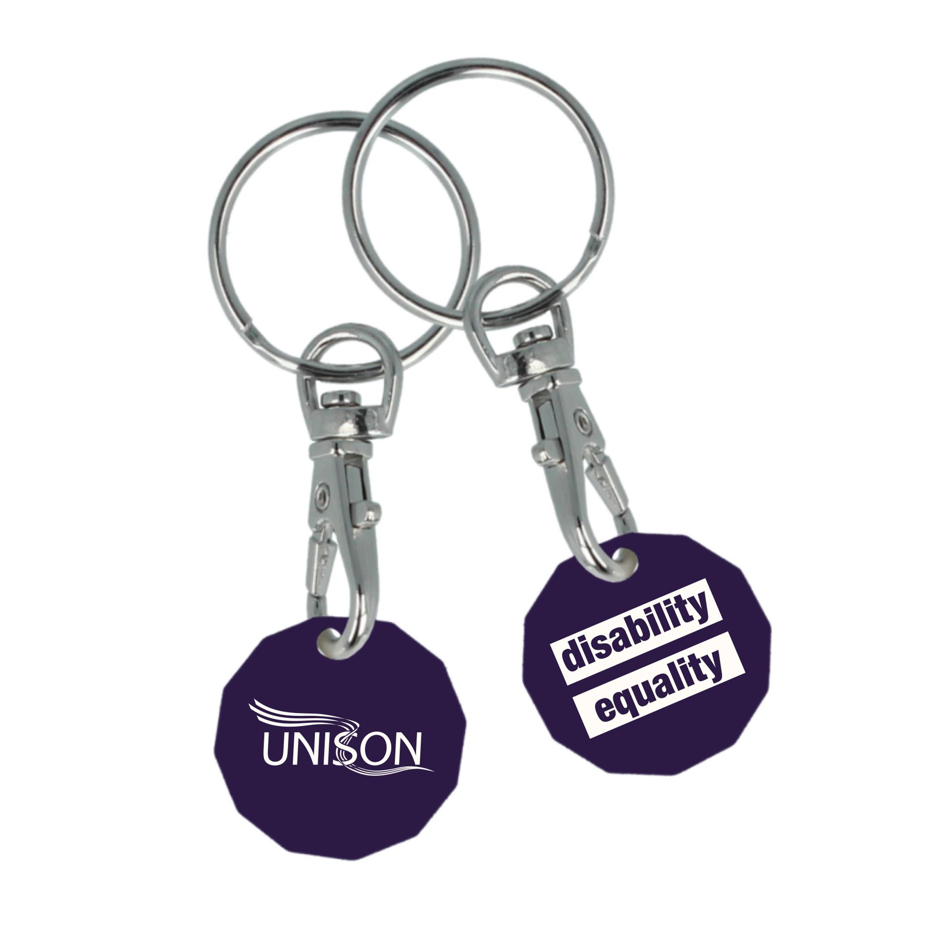 Made from 100% recycled plastic. Printed in white UNISON to one side, disability equality to other side.