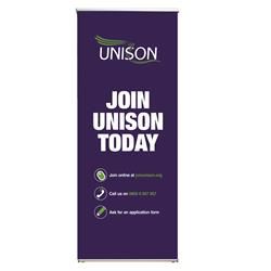 800mm wide, heavy base. Suitable for indoor and outdoor use.1 Year warranty. Supplied with padded carry bag. Printed in full colour to your design.