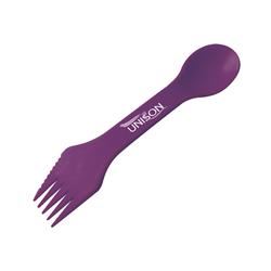 3 in 1 item combining fork, spoon and serrated cutting edge. Printed in white in one position UNISON logo.