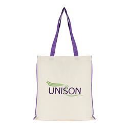 420 x 385mm. 30cm handles. Natural 5oz cotton shopper with coloured piping and handles. Printed in one colour in one position.