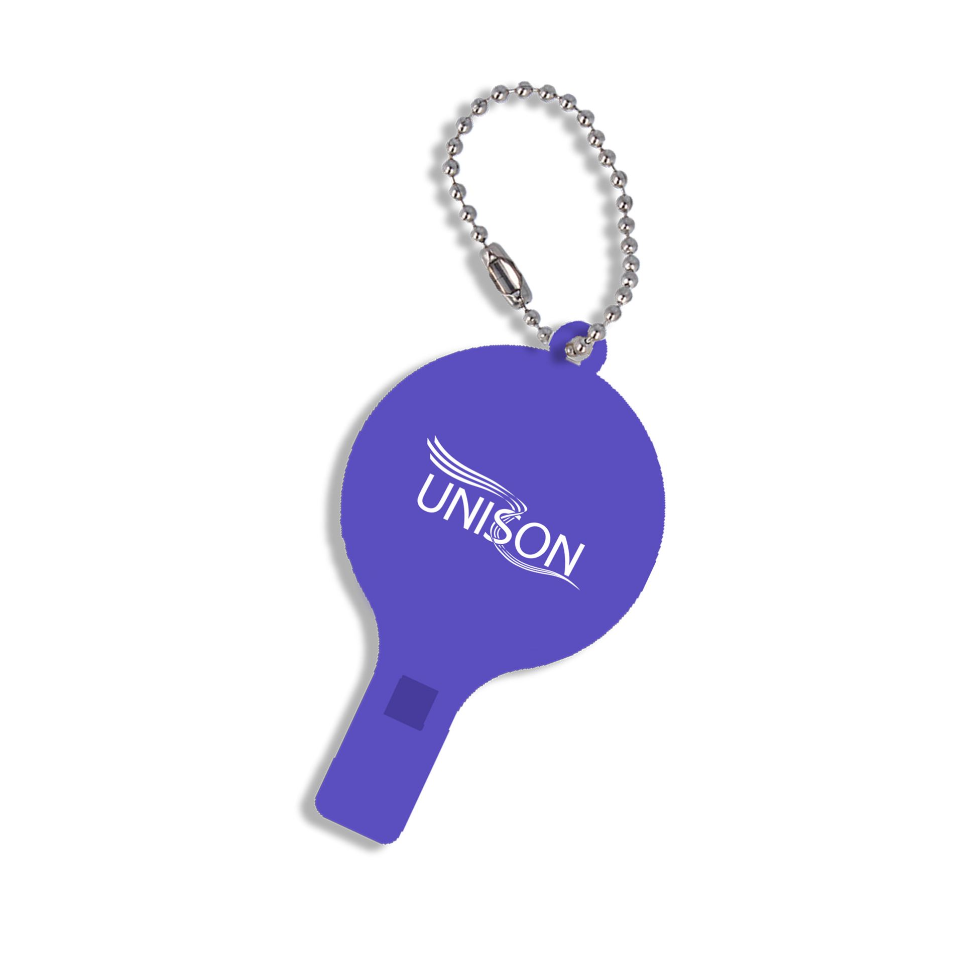 40mm whistle. Made in UK from recycled plastic. Supplied with a ballchain fitting. Printed in one colour in one position.
