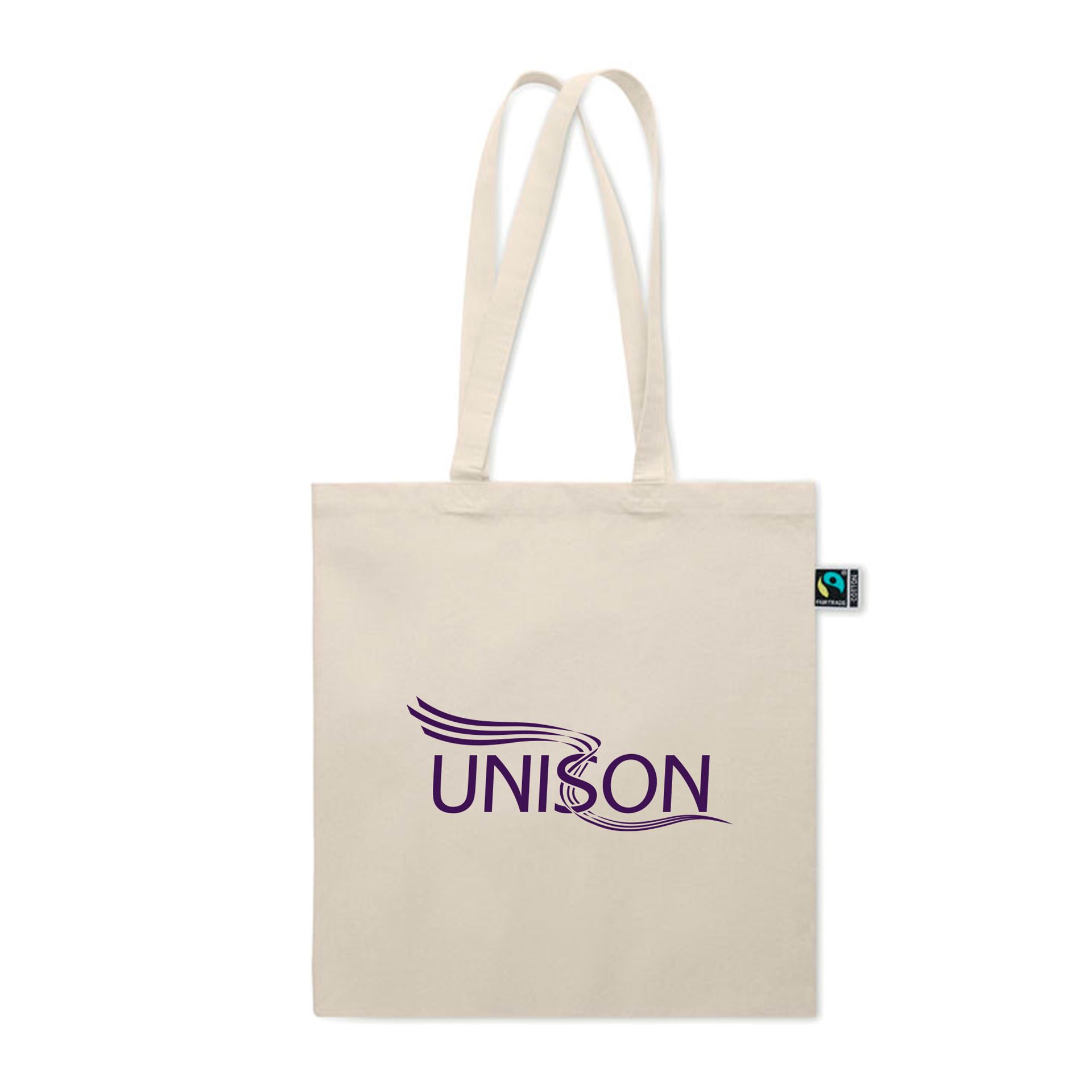 38 x 42 x12cm 180 gr/m² shopping bag with long handles and gusset. Made from Fairtrade cotton. Printed in one colour in one position.